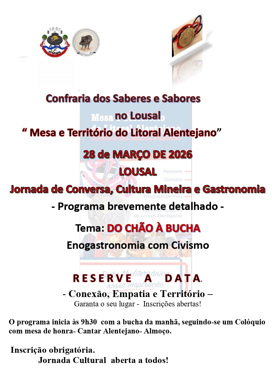 Faz se notar que as actividades a realizarem-se no Concelho de Grândola e especificamente nas Minas do Lousal enquadram-se numa perspectiva meticulosamente refletida no sentido de envolver a mesa e os territórios Mineiros. A Confraria cria um mote para envolver na Mesa a vivência Mineira de Aljustrel e as duas outras existentes no distrito de Beja Minas de Neves Neves Corvo (Castro Verde) e S.Domingos (Mertola).